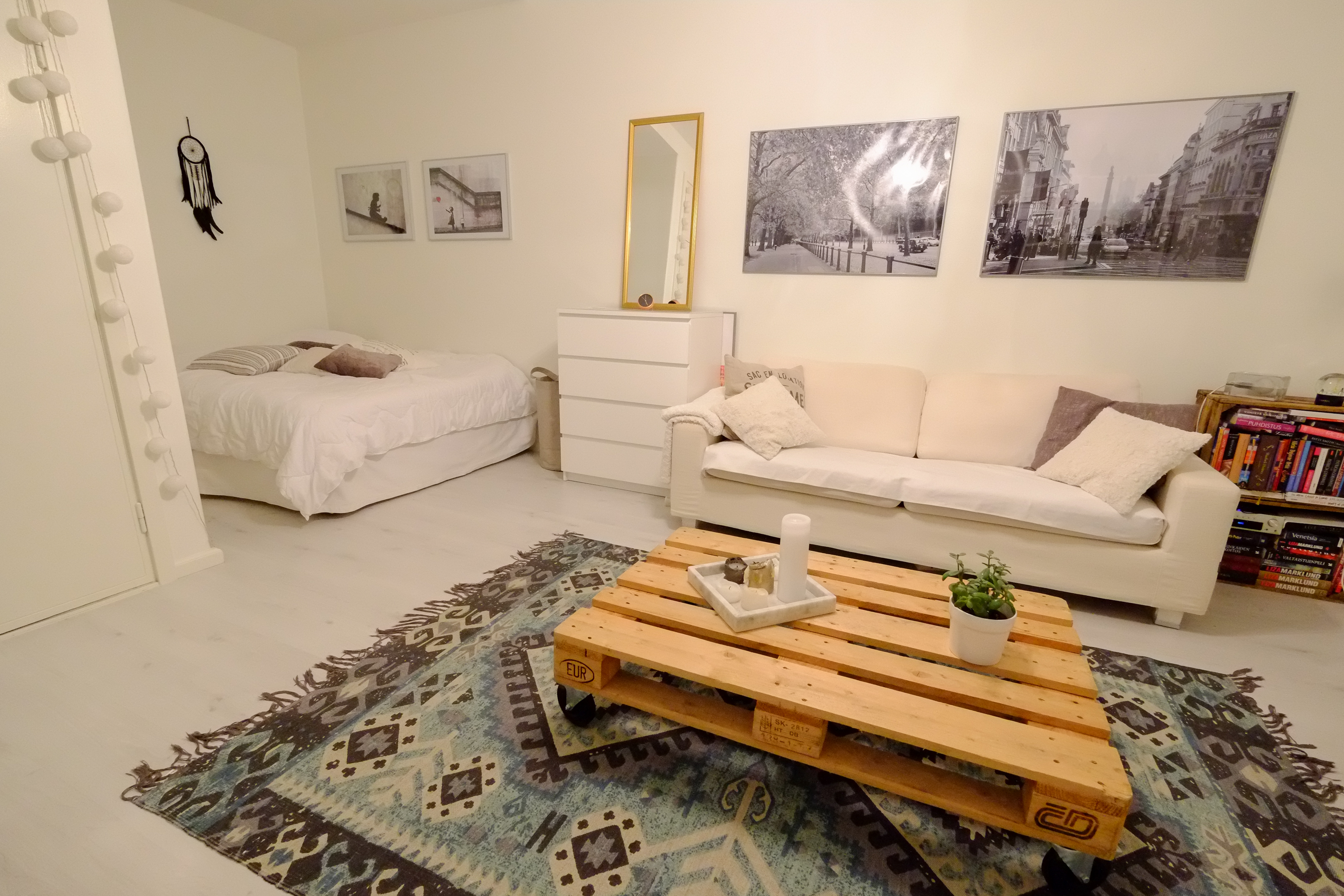 Nous arrivons en fin d’après-midi à l’aéroport Vantaa depuis Stockholm. Un enfant pleure avant le décollage dans l’avion, refusant de s’attacher et causant 40min de retard au vol. En arrivant à Helsinki, nous prenons la ligne L561 pour gagner le centre ville. Nous récupérons les clés de notre appartement qui se trouvent dans la rue Hameentie. Il est grand, propre et très cosy comme savent le faire les scandinaves. Nous nous sentirons comme à la maison ! Pour dîner, nous allons faire des courses à Lidl (une enseigne bien connue pour nous, français) et repartons avec un petit sac de provisions pour tenir le séjour.