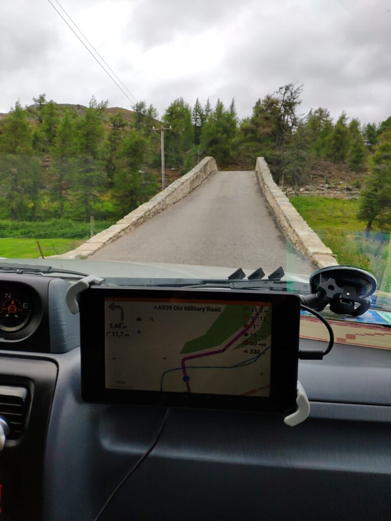 Pour suivre des traces : Avec notre 4×4, l’avantage c’est qu’on peut rouler (presque partout) alors pour suivre des traces, nos meilleurs amis sont Osmand ou Maps.me. C’est notamment grâce à elles que nous avons trouvé un superbe endroit pour la nuit (que vous ne trouverez jamais sur Park 4 night) ou encore le passage à gué près de la distillerie de GlenLivet. Ce sont aussi nos aides lorsque la piste devient difficile ou qu’elle s’efface pour nous guider sur la direction à suivre.