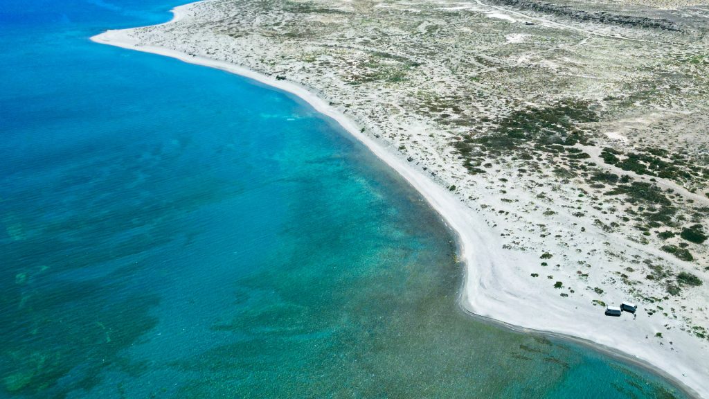 En sortant, nous faisons le ravito pour l’essence et les courses et c’est reparti. On s’engage ensuite vers la piste n°9. On cherche désespérément de l’eau — plusieurs points sont signalés sur les applis, mais aucune trace sur place. Nous finissons par trouver un puits à l’eau trouble. Un habitant étonné, nous exhorte de ne surtout pas la boire. Ce n’était pas prévu mais, même pour la douche ou la vaisselle, ça nous met le doute.