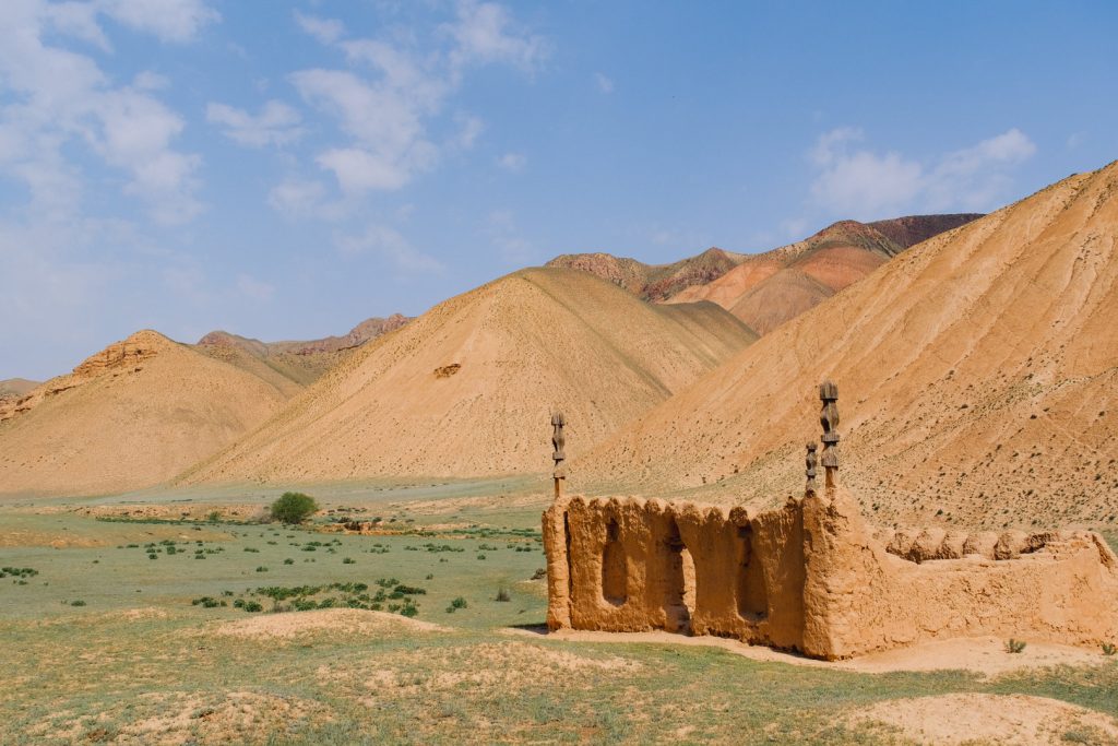 Nous continuons la piste vers le canyon. Elle est cassante mais de niveau facile par temps sec. Elle apparaît dangereuse après la pluie car la glaise doit devenir collante. Nous observons les points de vue, les marmottes et le fameux canyon à la fin de la piste. Nous pouvons aussi voir des gombèzes, mausolées d’argile centenaires.