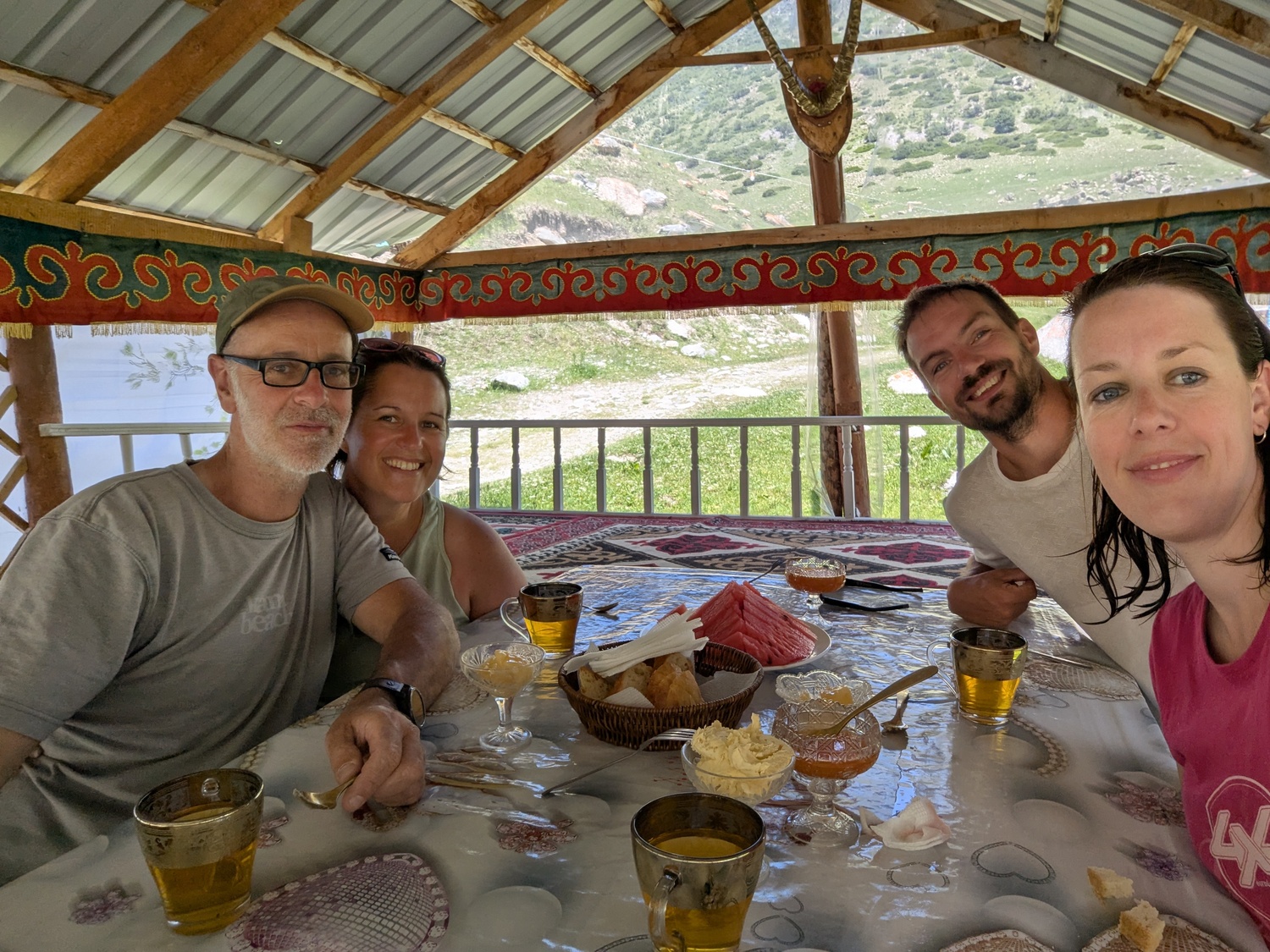 Du miel, du beurre, de la confiture, du pain, de la pastèque, du thé à volonté…C’est un régal et très apprécié après la baignade.
