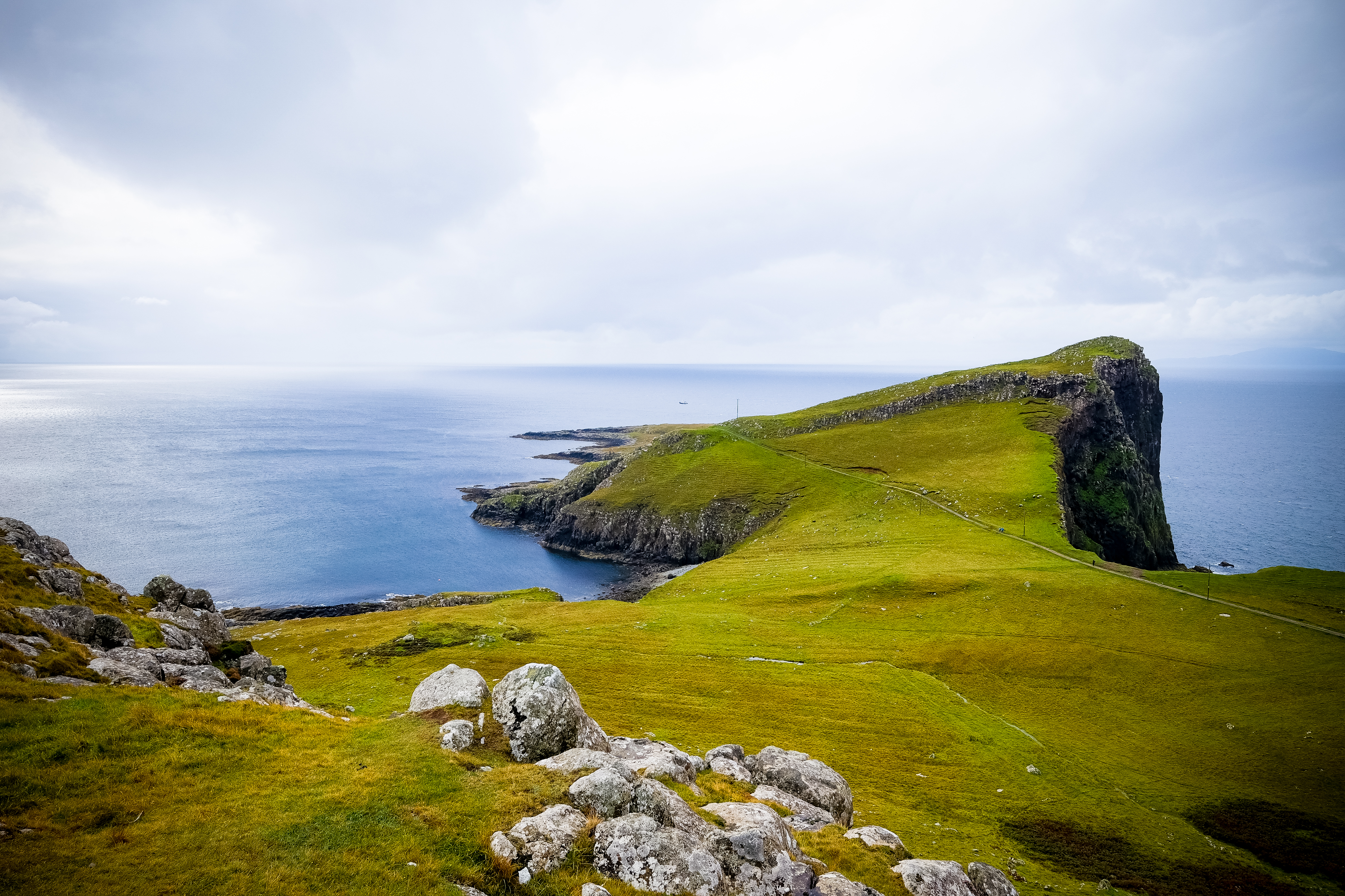 Des vidéos de phoque dans la poche, nous pouvons partir pour un endroit qui semble être le bout du monde : Neist Point et son phare !